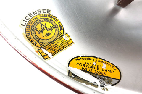 All original with tags signed M.G. Wheeler Sight Light. Vintage 14" tall architect drafting light from the 1950's with a removable 11 3/4" diameter aluminum shade and a 6 1/8" diameter base. Original brown color with brass details. Very clean, no dents, light surface scratches only. On/off switch, supports standard light bulbs up to 100 watts (included) and has a long and safe power cord that connects to standard A type outlets.