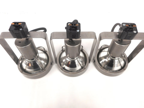 All in excellent condition, high-end spotlights, halogen flood lights included. Ready to install on your modern kitchen, office or boutique light track. Signed Juno T690NA. Support PAR38 lamps up to 250 watts. Swivels 180 and easy to unhook for cleaning. Each one has a 5 inches diameter, is 5.5 inches tall and weighs 765 grams including light bulb. For installation on Juno T, TU, R or V Series light tracks or similar. Acquired from a closed down luxury store in Montreal.