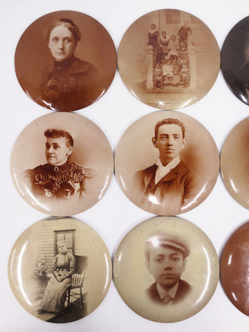 Large 6" medallions, all in excellent condition, 8 out of 11 are identified. From the 1910's, maybe earlier. All marked Columbia Medallion Chicago. Found together. They show members of two Quebec (Canada) families: the Barbeau and the Magnan. Barbeau family: Grandfather and grandmother Barbeau, Henri Barbeau, Napoléon Barbeau, grandfather and grandmother Magnan, Marie-Anne Magnan, 8 brothers and sisters on one medallion, and Priest Godbout.