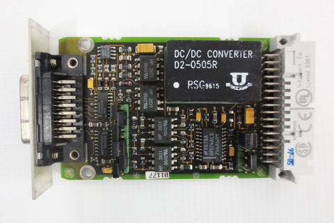 Tested, working, refurbished, very clean. Siemens Simatic S5, CP 524 communications processor board for PLC, Minicomputer. Model 6ES5524-3UA15, C79040-A32-C634-08-85. It includes a Siemens Simatic S5 interface module 6ES5752-0AA43, 48-pin/15-pin, also in excellent condition. Surplus industrial control system card from a closing plant in Quebec, Canada. Internal ref. code HX3.