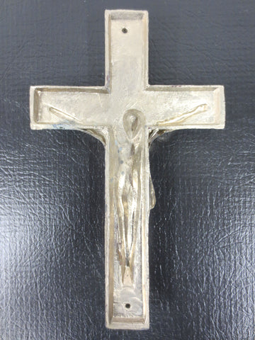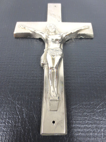 Vintage Crucifix Fixture for Funeral Casket Coffin 6", Nickel Plated, Rat Rod