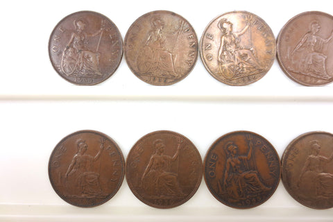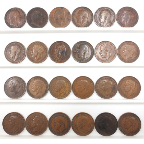 24 Coins Collection Lot 1903-1948 One 1 Penny Bronze, UK Great Britain British