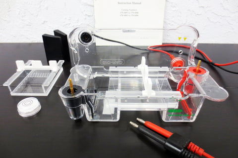 - Instructions manual, 2 fixed combs, 2 gel trays, 1 pair of casting gates, original Bio-Rad leads and 2 round levels.