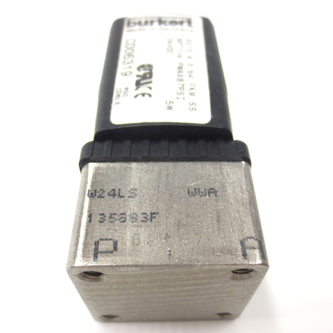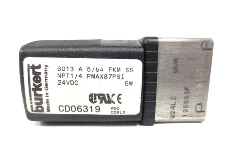 Burkert Solenoid Valve 24VDC 5W 1/4" NPT PMAX 87PSI Model 6013 A 5/64 FKM SS
