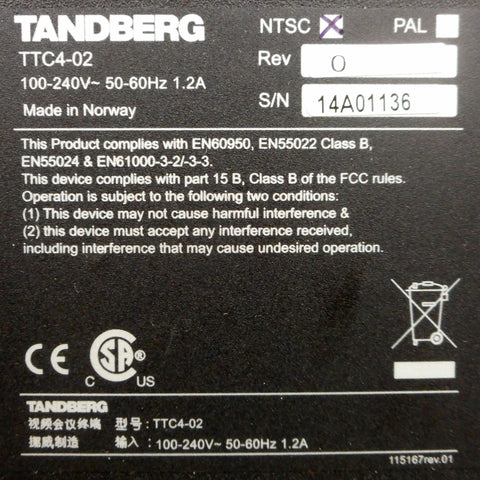 Excellent condition, very clean, tested and fully functional. Made in Norway by Cisco Tandberg, model Compass MXP TTC4-02. Integrated video camera, hand held phone and power supply included. Ethernet, ISDN 1-2-3, PC DVI and USB ports. 100-240V, 50-60Hz, 1.2A. Serial 14A01136. Measures 22 X 15 1/2 X 3 1/2 inches.