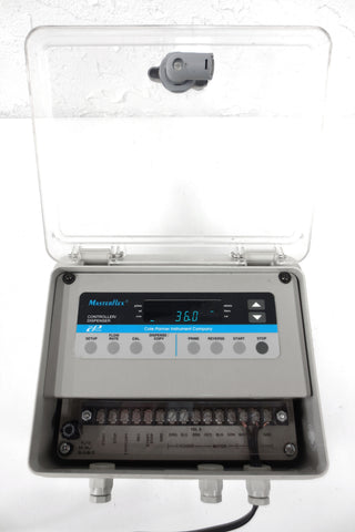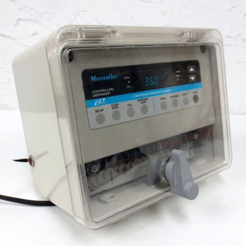 Tested and working, very clean. Cole-Parmer Masterflex digital controller and dispenser model 77300-70. See through door has a sturdy lock, light scratches only.  Surplus industrial instrument from a plant in Montreal (Quebec, Canada). Measures 10 X 9 X 7 inches and weighs 2.6 kg.