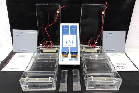 Complete, clean and functional gel electrophoresis system by Autobase Q-Life Systems. Surplus from the National Research Council of Canada. System is software assisted and includes: