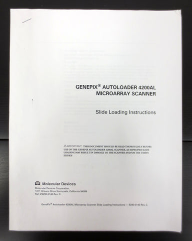 GenePix Autoloader 4200AL Microarray Scanner Manual Instructions, Molecular Devices