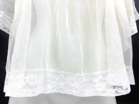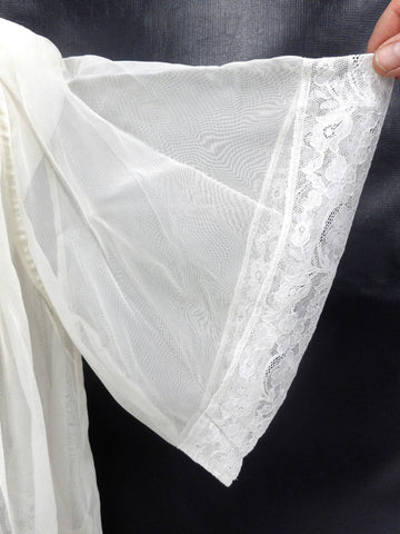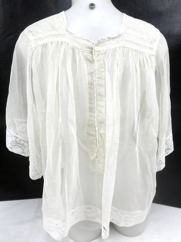 Authentic altar boys and girls lace blouse from the 1940's. Excellent condition, no stains, no tears. Professionally cleaned. Very fine, handmade. From a closed down church in Montreal, Quebec, Canada. Measures 21 inches long, 13 in shoulder to shoulder and has 11 in long sleeves. Loose and wide waist. Beautiful see through women's blouse for a cool night out, costume party, religious ceremonies and choir concerts. More measurements available upon request.