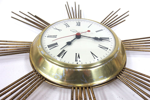 Mid Century Modern Sunburst Starburst Atomic Wall Clock Signed Ingraham 19" dia.