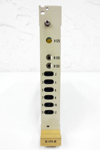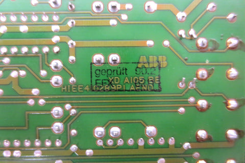 Like new, inspected and functional, no box. Surplus from an aluminum manufacturer. Control circuit board card by Brown Boveri ABB, model XD A105 BE, HIEE 400897 R1, HI903983-855/41. Measures 7 1/2 X 5 1/8 inches.
