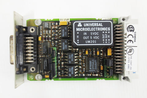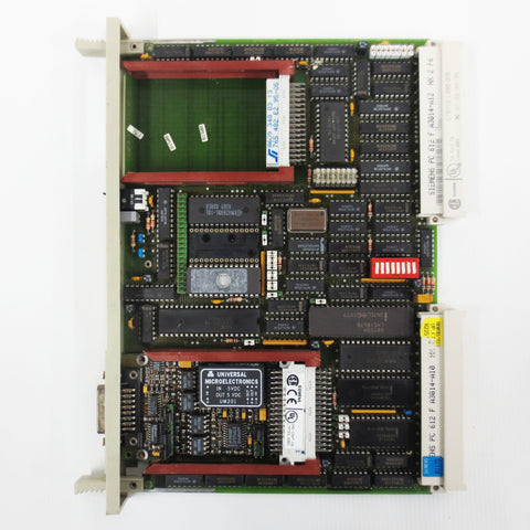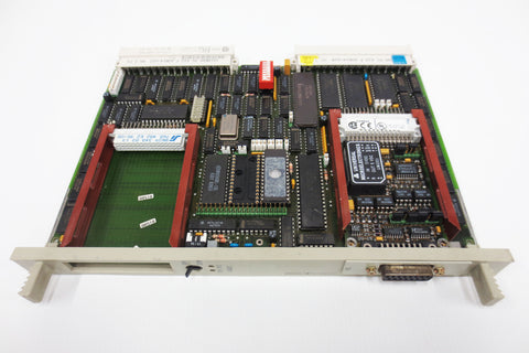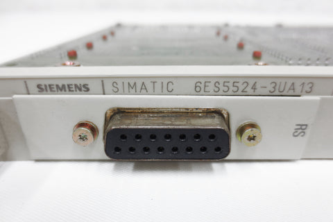Tested, working, refurbished, very clean. Siemens Simatic S5, CP 524 communications processor board for PLC, Minicomputer. Model 6ES5524-3UA15, C79040-A32-C634-08-85. It includes a Siemens Simatic S5 interface module 6ES5752-0AA43, 48-pin/15-pin, also in excellent condition. Surplus industrial control system card from a closing plant in Quebec, Canada. Internal ref. code HX2.