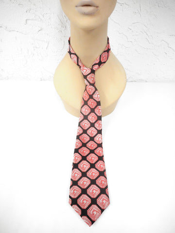 Excellent condition, professionally cleaned. Chic square roses on a black background. Signed Barsoi (Greyhound dog) Setura Diolen. Beautifully textured fabric. 100% polyester. Measures 52 inches long and widest is 3 1/2 inches.