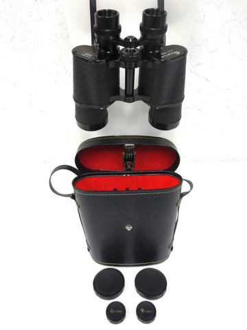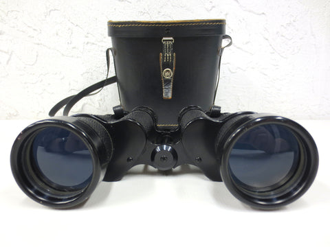 Excellent condition, very clean, fully functional. Original leather case and 4 lens caps. Powerful binoculars signed Carl Wetzlar, 7 X 50 Marine, 372 ft at 1000 yds, coated and lumenized. Serial No. J-9 70781. Cast and binoculars each have their own vinyl neck strap.