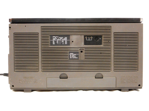 Very clean, works perfectly, powerful. Measures 20 X 11. Signed "Eversonic Model GP-1 3 Way Speaker System". Dual cassette tape, recorder, tape fader, dubbing, FM, SW1 and SW2 and M2.