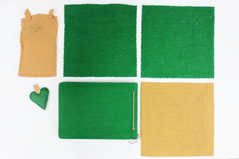 Vintage Handmade Green Felt Photo Album Scrapbook, Tablecloths, Pocket & Heart 6 Pieces Set
