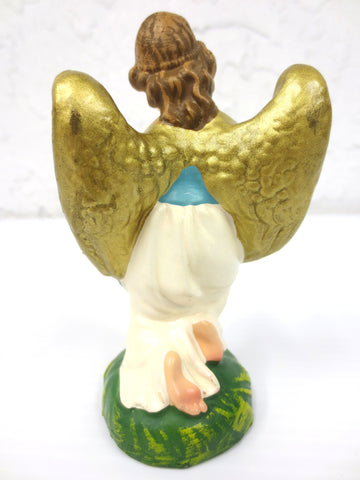 Vintage Manger Creche Angel Kneeling Figurine 3 3/4", Paper Mache Italy Christma