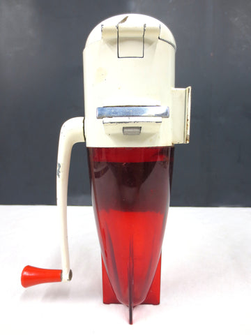 Complete, fully functional. No cracks, no missing teeth. Measures 10 inches tall and has a 3 inches diameter. Wall mount and screws, ready to install. Original handle tip and white paint, some paint loss. Signed Dazey St.Louis, U.S.A, Model 160. Great for your vintage kitchen or man cave bar.