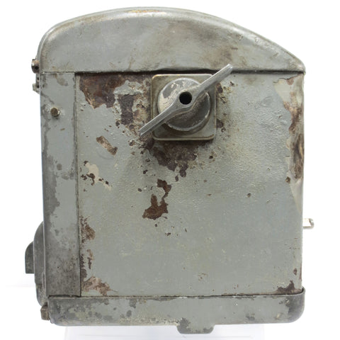 All numbers reset correctly and buttons work. Both dials are clear and intact. Metal case is in good condition, surface rust only. Original color preserved.The handle is complete and turns well on the right. No handle on the left side. The metal tag is in great condition and says "Neptune Print-O-Meter Auto Stop Register Model 434 Code 1" with instructions. Beautiful piece to restore and add to a gas pump. Can also be transformed into a cool lamp. Measures 8 X 9 X 8 inches