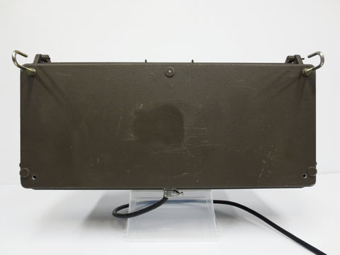 Ready to plug in, working tube light bulb included. Light box measures 20 X 8 X 9" and is in excellent condition. Light cover is heavy plastic, base is aluminum. Large internal reflector. Includes a Philips SOX 55 Watts low pressure sodium light bulb and a Philips Advance HX-HPF autotransformer ballast with its ignitor and capacitor. Suitable for hazardous locations. For your garage, man cave or industrial decor. Two metal hooks provided, 2 others can be added as needed. Or you can screw the light box directly to your wall in a minute.