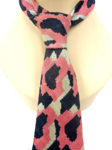 Excellent condition, professionally cleaned. Very cool pink, blue and white camouflage style. Signed Magis Seta Naturale, Italy. Wool and cotton. Measures 54 inches long and widest part is 4 inches.